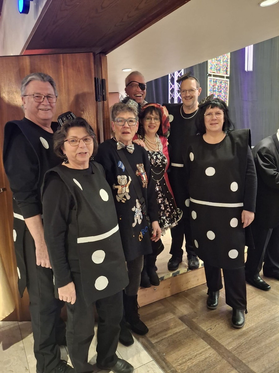 Im Januar war es wieder soweit, die Kolpingsfamilie Hofheim i. UFr. besuchte zusammen mit Freunden und Gästen die Prunksitzung der „Schwarzen Elf“ in Schweinfurt. Bereits zum 12ten mal hatte die 1. Vorsitzende Anita Köberlein einen ganzen Bus mit über 50 Personen organisiert, welche sich auf einen unterhaltsamen Abend freuten. Die „Schwarze Elf“ ist eine Faschings-Abteilung innerhalb der Schweinfurter Kolpingsfamilie und hat immer wieder jede Menge Highlights im Programm zu bieten. Einen Abend, wie man ihn nur bei der „Schwarzen Elf“ erleben kann, mit den Stadtpfeiffern, Sketchen, getanzten Bildern und Weltreisen, sowie tänzerischer Akrobatik und Bütten, ja Bütten vom Allerfeinsten. Als besonderer Gast war Margit Sponheimer unter den Gästen und sang ihren Hit „Am Rosenmontag bin ich geboren“.