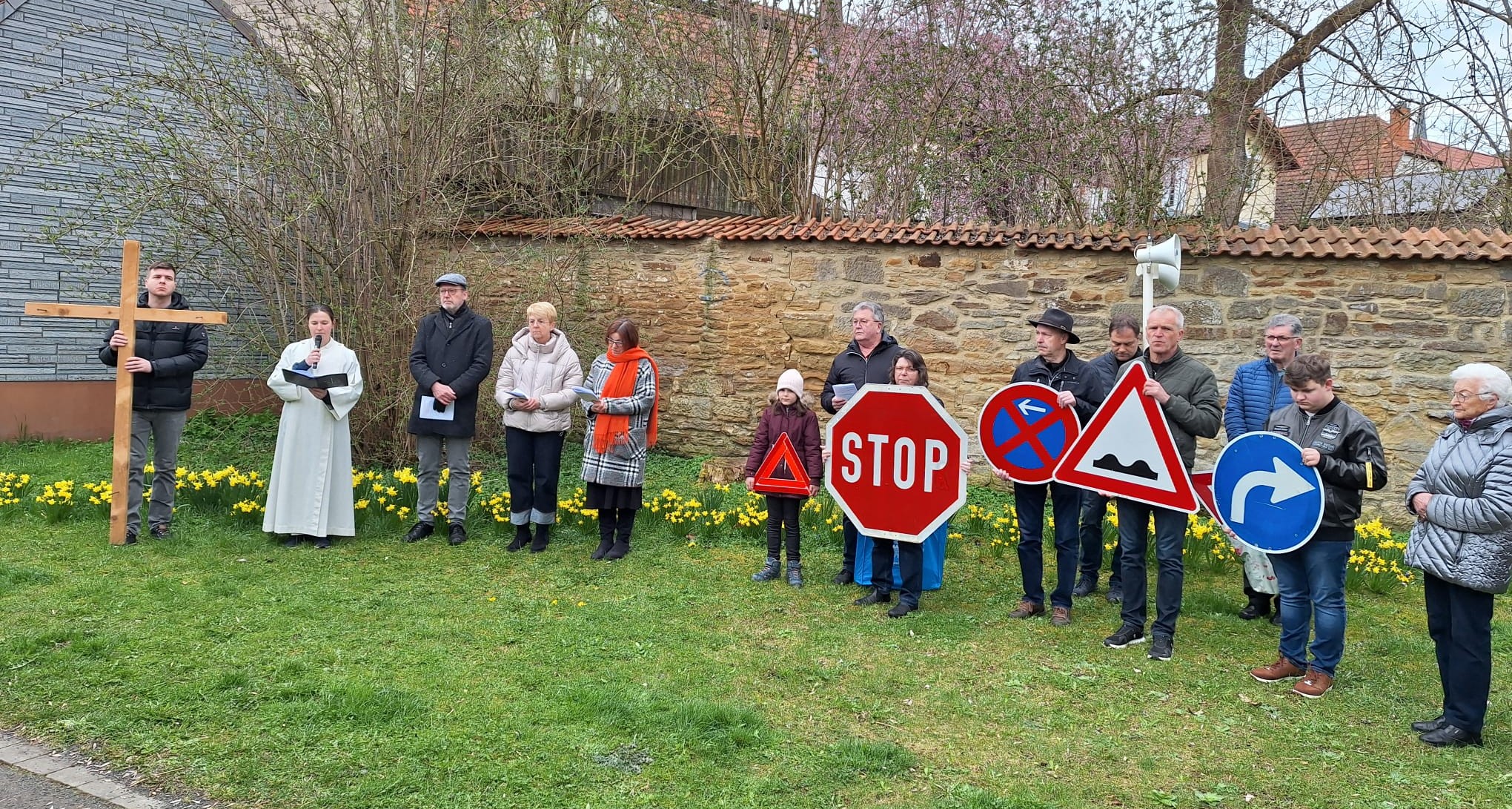 Am Karfreitag schaute die Kolpingsfamilie und Pastoralreferentin Agnes Donhauser, mit den Teilnehmern des Kreuzweges, auf einer besonderen Weise auf Jesus. Wir schauten auf sein Leiden und Sterben, um nachzuvollziehen, was damals geschah und zu verstehen, dass sein Weg in den Tod ein Weg zum Leben war. Die einzelnen Abschnitte des Kreuzwegs werden normalerweise "Stationen“ genannt. Bei uns sind das aber sieben "Haltestellen". Sieben Szenen, in denen sich sein Leidensweg in unserer Zeit widerspiegelt. Begonnen haben wir mit dem Zeichen, das uns immer wieder daran erinnert, wie Jesus gestorben ist: am Kreuz. So ging es dann noch die weiteren "Haltestellen" weiter. Die Kolpingsfamilie Hofheim i. Ufr. bedankt sich für die rege Beteilung am Kreuzweg. Treu Kolping