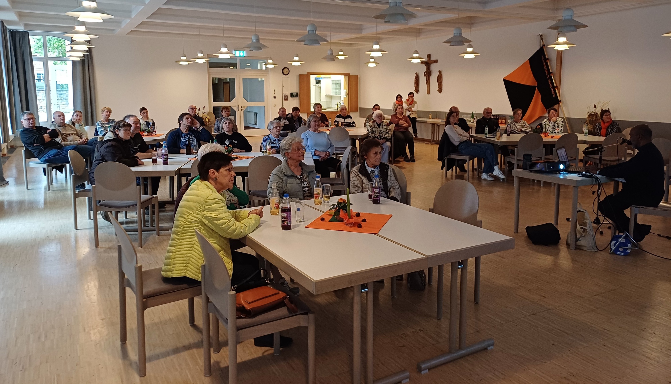 Ein gut gefüllter Pfarrsaal bei der Vorstellung von Pfarrvikar Antony´s Schulprojekt.